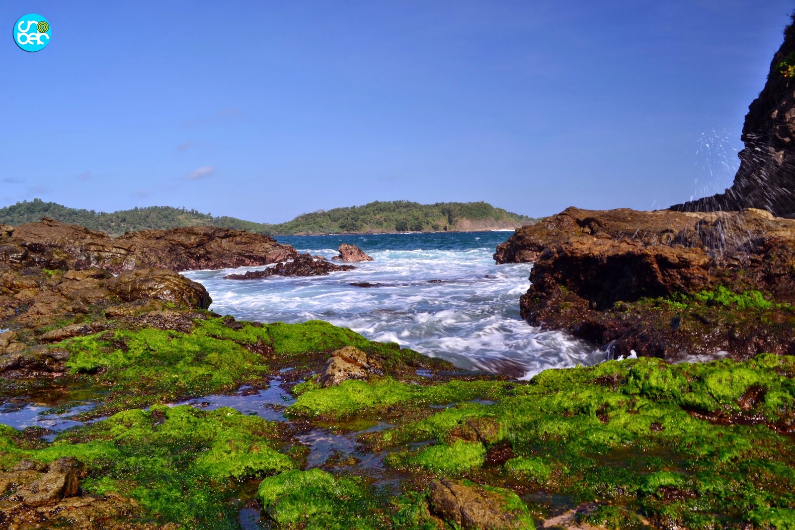 Untuk mendekat di batu karang yang besar, agan harus melewati bebatuan. Terus terang ketika baru aja sampai ane langsung ingin mendekat di batu karang yang besar. Padahal waktu itu air laut sedang pasang. Nach ini manfaat sebagai landscaper gan, kita jadi tahu perilaku alam. Air laut biasa pasang sekitar jam 9.00 - 14.00 setelah itu surut & biasa pasang lagi sekitar jam 18.00 an. Karena hasrat ingin mendekat tak terbendung maka ane mencoba melangkahkan kaki. Baru sampai di bebatuan di tengah, tiba-tiba ombak besar datang dari arah timur & barat. Karuan saja ane panik karena sambil pegang kamera & tripod lagian ane juga pake sepatu. Byur,,, astagfirulloh,,, untung aja ane sergap menuju batu yang agak tinggi. Setelah ombak mereda, ane putuskan untuk kembali sambil menunggu air laut surut. Huft,,, jantung masih berdetak kencang. Sambil menanti surut ane sholat dzuhur dulu kemudian makan siang. Nach kalo agan kemari jangan lupa bawa bekal lho, karena disini nihil dari warung. Terik matahari menunjukkan jam 14.00 & air laut mulai surut. Bebatuan yang dari pagi tenggelam kini mulai bermunculan. Lets do it again,,,, Dengan semangat menggebu-gebu ane mulai melewati bebatuan. Setelah beberapa langkah tiba-tiba terjadilah. Brak,,,, astagfirulloh ane jatuh terpeleset di batu yang ada lumutnya. Masih dengan membawa kamera & iDevice tapi tubuh ini sudah beralaskan batu. Baju & celana ane kotor banget dach. Dan siku tangan kiri lecet serta kaki kiri merah lebam. Tak lama kemudian ane lanjutkan untuk menuju bebatuan besar. Dan Alhamdulillah akhirnya sampai,,,